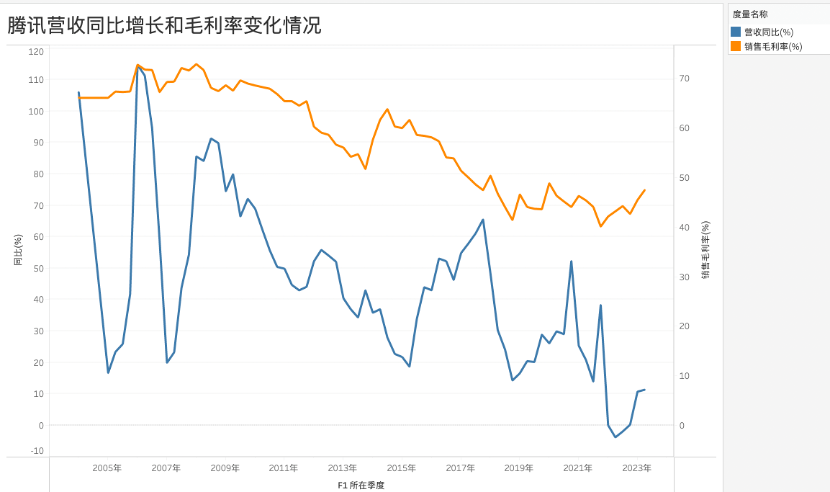 在分析增长之前我们先看腾讯毛利率的变化情况。