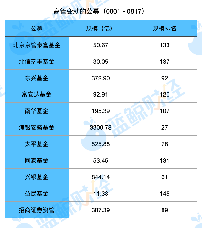 中小规模公募,高管更换频繁
