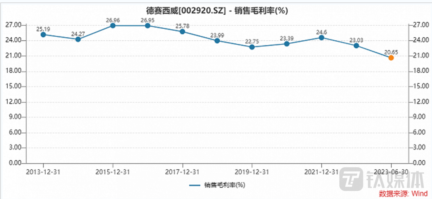 虽然公司业绩得益于三大业务发展,但是其背后的隐忧仍需注意。财报数据显示,公司销售毛利率由去年底的23.03%降至今年上半年的20.65%,创下历史新低。