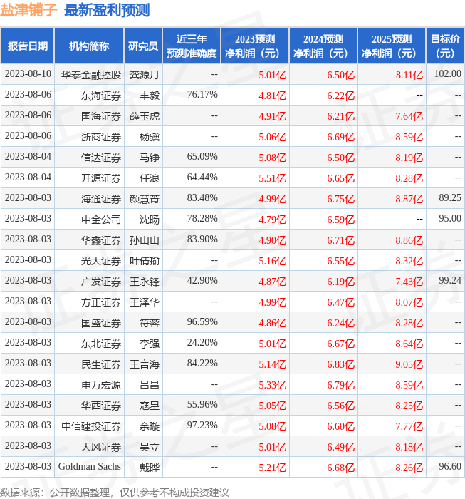 2023年8月17日盐津铺子(002847)发布公告称国泰君安、华安基金、海富通、工银瑞信、广发基金、易方达、浦银安盛、南方基金、汇添富、银华基金、大家资产于2023年8月16日调研我司。