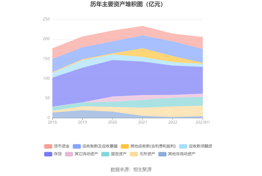 资产重大变化方面,截至2023年二季度末,公司货币资金余额较上年末增加53.95%,占公司总资产比重上升4.35个百分点;存货余额较上年末减少8.40%,占公司总资产比重下降1.62个百分点;在建工程较上年末增加16.63%,占公司总资产比重上升0.76个百分点;应收账款较上年末增加1.03%,占公司总资产比重上升0.45个百分点。