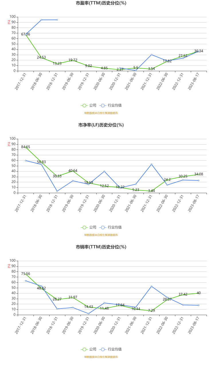 公司近年市盈率(TTM)、市净率(LF)、市销率(TTM)历史分位图如下所示: