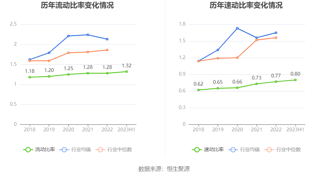 2023年上半年,公司流动比率为1.32,速动比率为0.80。