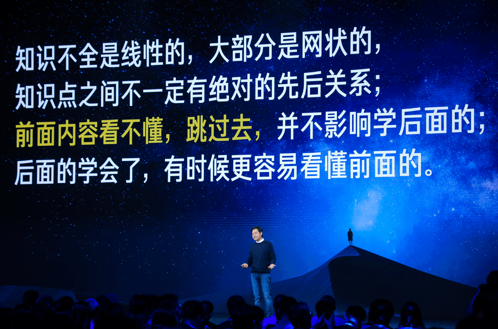 雷军通过自学的实践摸索,发现了有些知识点前后并无绝对的先后关系,因此,当遇到前面难以理解的内容时,他会果断地跳过去,继续往后学习。随着知识的不断积累,他发现,有时候后面的学习甚至能够更好地帮助他理解前面的内容。这种灵活的学习方式,让他更好地应对了课程的挑战。