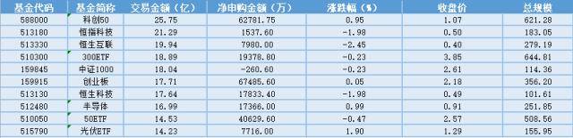从成交金额上来看,25日成交额最大的是科创50(588000),交易金额25.75亿元。剩余成交额排名前三的恒指科技(513180)、恒生互联(513330)、300ETF(510300),成交额分别为21.29亿元、19.94亿元、18.89亿元。从成交额规模来看,A股相关的指数ETF成交额较大。