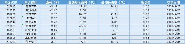 下跌方面,25日跌幅最大的是游戏ETF(516010)跌幅达到3.13%。剩余排名靠前的游戏动漫(516770)、游戏ETF(159869)、游戏AH(517500),跌幅分别为2.95%、2.95%、2.70%。从整体上看数量占比较多的为游戏ETF。