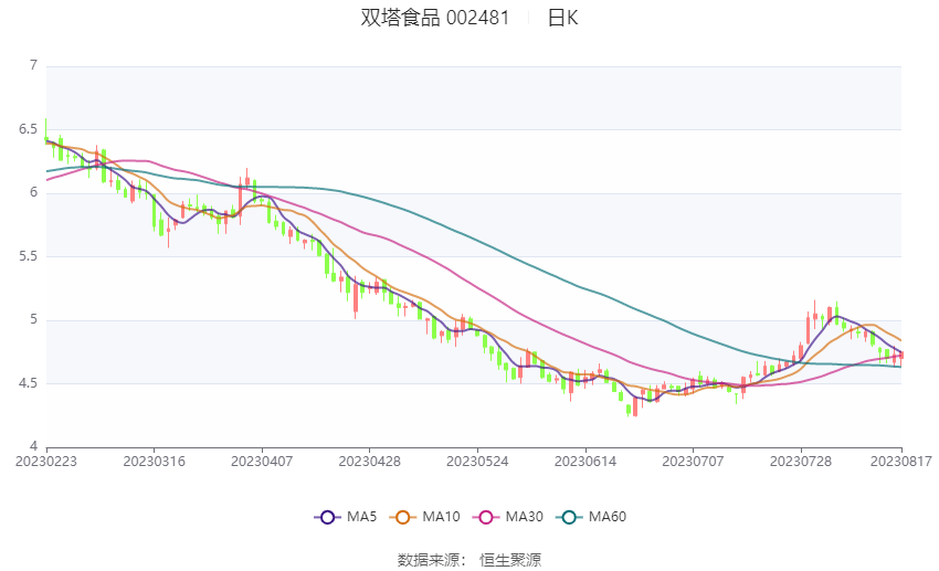 以8月17日收盘价计算,双塔食品目前市盈率(TTM)约为-15.91倍,市净率(LF)约2.56倍,市销率(TTM)约2.65倍。