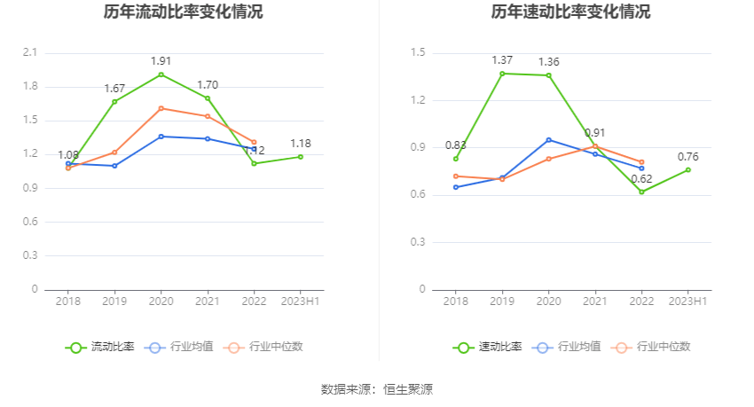 2023年上半年,公司流动比率为1.18,速动比率为0.76。
