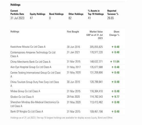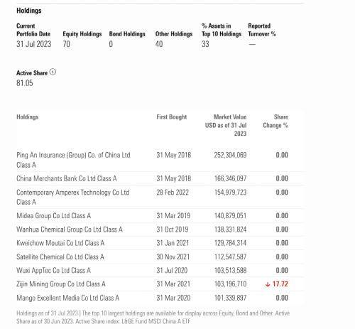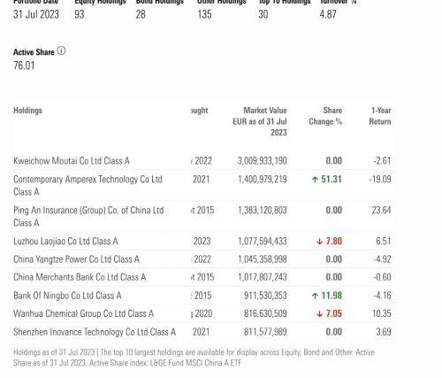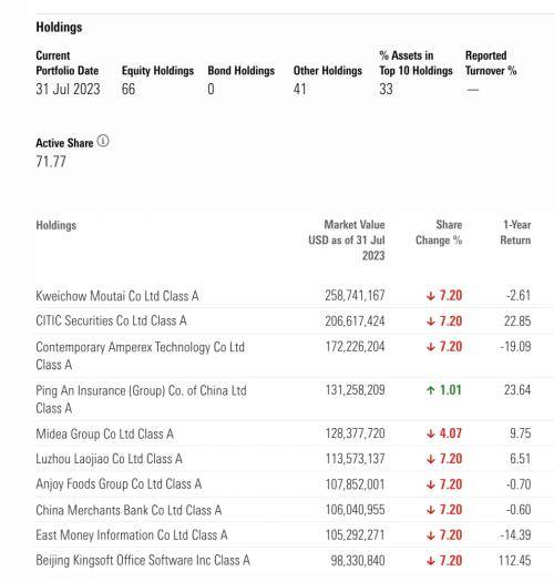 截至2023年7月底,基金 重仓股包括贵州茅台、宁德时代、中国平安、泸州老窖、长江电力、招商银行、宁波银行、万华化学、汇川技术等。