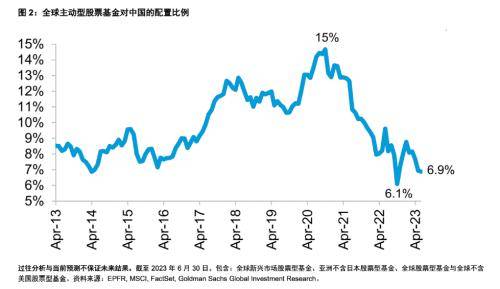 联博资深市场策略师黄森玮日前发表市场观点表示,投资者对美股参与热情不高的情况也同样出现在中国股市,不仅内资目前仍未大举入市,外资对中国股市的配置也来到历年的相对低位。下图为全球主动型股票基金对中国的配置比例,最新数据仅剩6.9%(截6月底)。