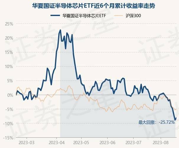 8月17日,华夏国证半导体芯片ETF最新单位净值为0.9605元,累计净值为0.9605元,较前一交易日上涨0.77%。历史数据显示该基金近1个月下跌9.96%,近3个月下跌10.71%,近6个月下跌8.17%,近1年下跌23.56%。该基金近6个月的累计收益率走势如下图: