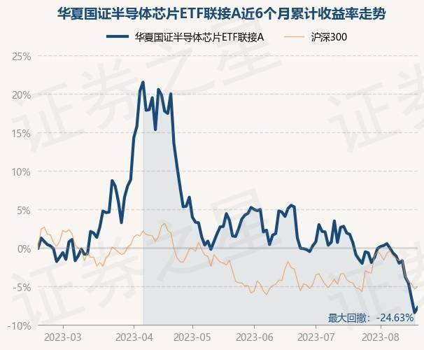 8月17日,华夏国证半导体芯片ETF联接A最新单位净值为0.8749元,累计净值为0.8749元,较前一交易日上涨0.73%。历史数据显示该基金近1个月下跌9.48%,近3个月下跌10.22%,近6个月下跌7.72%,近1年下跌22.44%。该基金近6个月的累计收益率走势如下图: