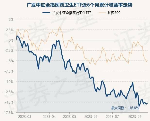 8月17日,广发中证全指医药卫生ETF最新单位净值为0.7075元,累计净值为1.415元,较前一交易日上涨0.23%。历史数据显示该基金近1个月下跌2.28%,近3个月下跌9.31%,近6个月下跌15.26%,近1年下跌10.96%。该基金近6个月的累计收益率走势如下图: