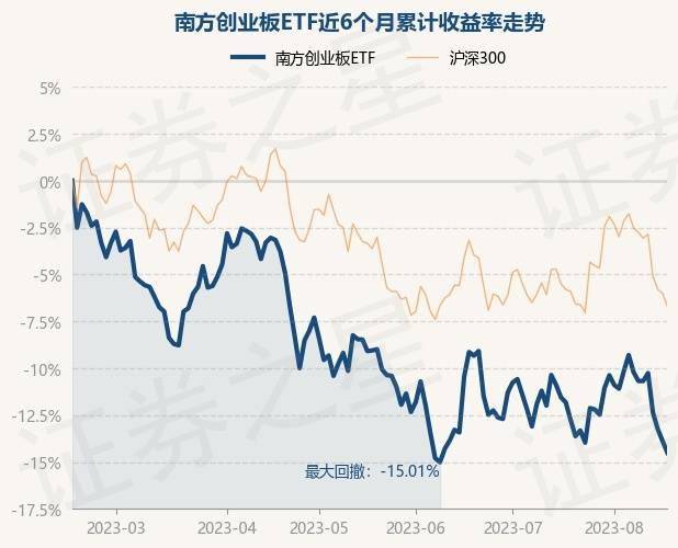 8月16日,南方创业板ETF最新单位净值为2.2939元,累计净值为1.1272元,较前一交易日下跌0.73%。历史数据显示该基金近1个月下跌4.07%,近3个月下跌6.66%,近6个月下跌14.53%,近1年下跌21.34%。该基金近6个月的累计收益率走势如下图: