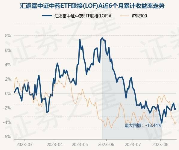 8月17日,汇添富中证中药ETF联接(LOF)A最新单位净值为1.2602元,累计净值为1.2602元,较前一交易日上涨0.25%。历史数据显示该基金近1个月下跌1.27%,近3个月下跌7.37%,近6个月下跌2.63%,近1年上涨13.83%。该基金近6个月的累计收益率走势如下图: