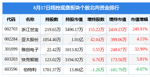 北向资金方面,当日线控底盘板块北向资金持股市值为15.64亿元,增持0.32亿元。其中增持最多的是浙江世宝,增持了0.25亿元。减持持最多的是伯特利,减持了101.79万元。线控底盘板块北向资金持股变动明细见下表: