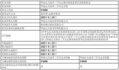华润元大润享三个月定期开放债券型证券投资基金(以下简称“本基金”)采取在封闭期内封闭运作、封闭期与封闭期之间定期开放的运作方式。本基金本次的开放期为2023年8月23日至2023年9月19日。