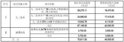 公司于2020年8月11日召开第三届董事会第二十一次会议和第三届监事会第十八次会议,审议通过了《关于使用可转换公司债券募集资金向子公司提供借款用于实施募投项目的议案》,同意向可转换公司债券募投项目实施主体九二盐业和湘澧盐化分别提供总金额人民币不超过42,000.00万元和3,500.00万元借款,专项用于实施其对应的“九二盐业年产30万吨离子膜烧碱项目二期工程项目”“九二盐业年产18万吨过氧化氢(双氧水)项目”“九二盐业374万m3/年采输卤项目”和“湘澧盐化2x75t/h锅炉超低排放环保改造项目”的建设。具体如下: