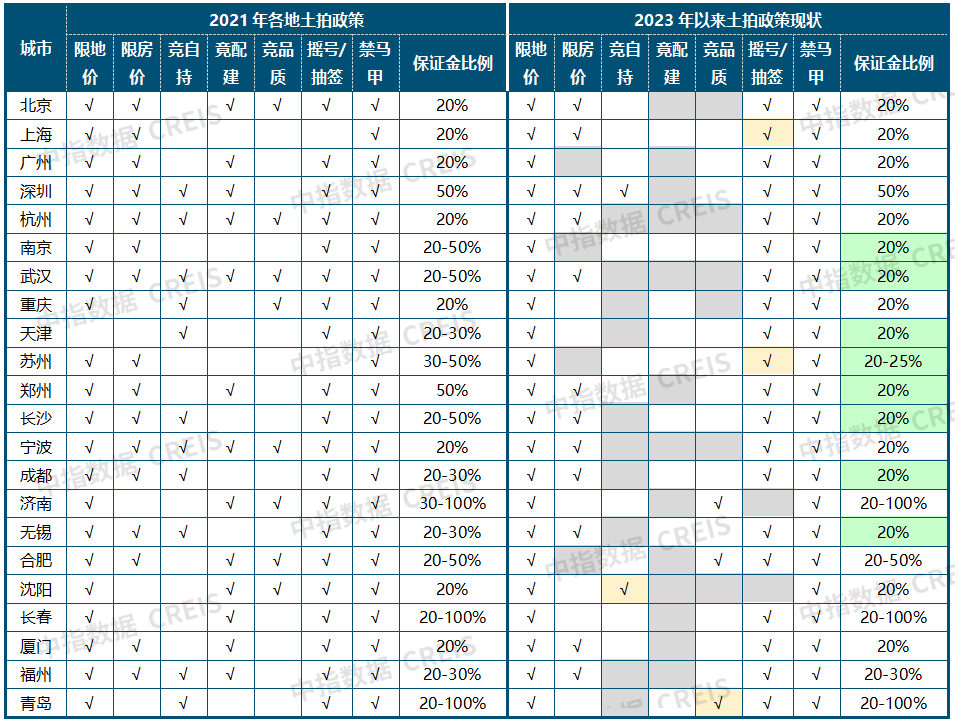 表:2021年及2023年22城土拍相关政策对比