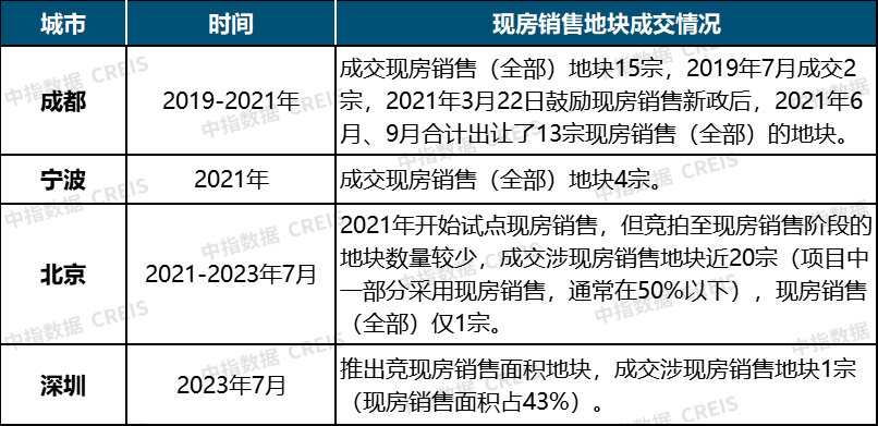表:近几年部分城市现房销售地块成交情况