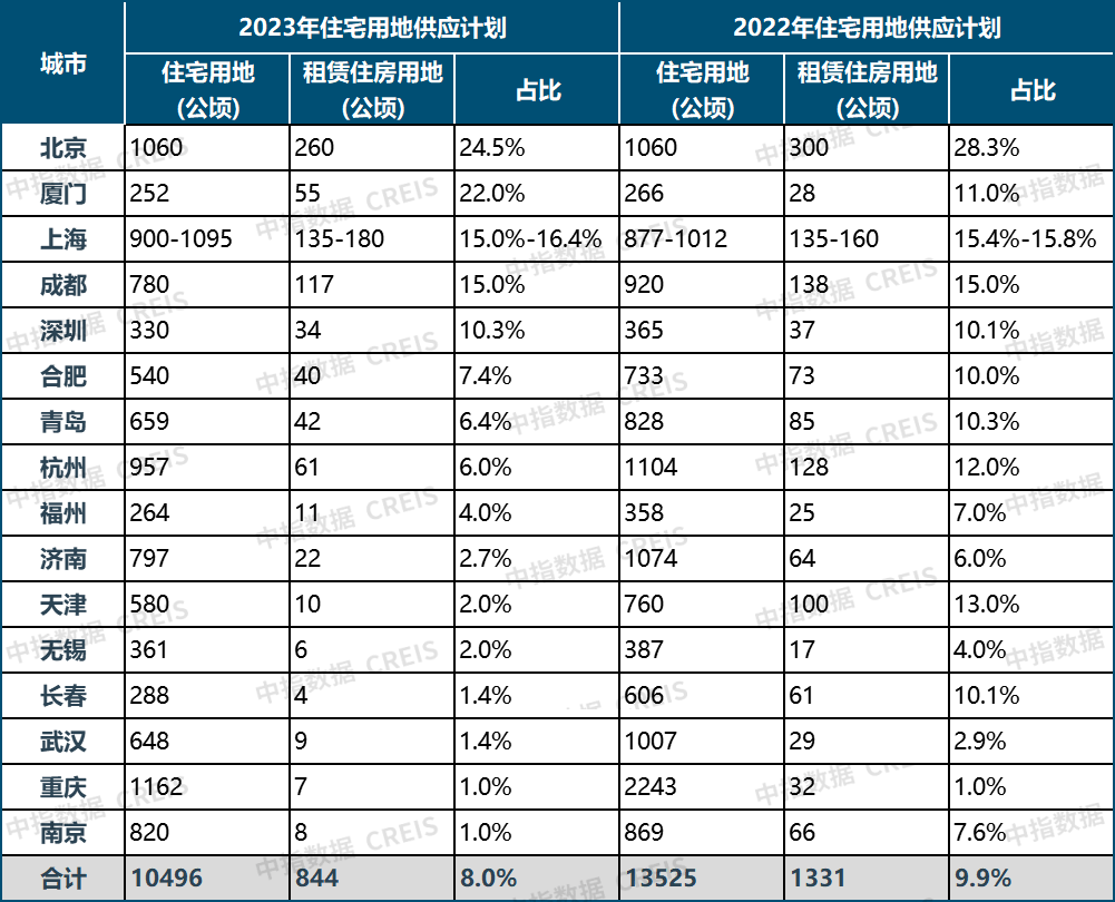 整体来看,在短期市场压力下,涉租地块的减少有利于减轻房企资金压力,同时,我们也看到,近两年中央对租赁住房供给的措辞多表述为“筹集”,如2022年8月住建部明确“十四五”期间全国计划建设筹集保障性租赁住房870万套(间),今年全国住房和城乡建设工作会议上提出“新开工建设筹集保障性租赁住房、公租房、共有产权房等各类保障性住房和棚改安置住房360万套(间)”,在新形势下,预计盘活存量或成为增加保障性住房,特别是保障性租赁住房供给的主要途径。7月21日,国常会审议通过了《关于在超大特大城市积极稳步推进城中村改造的指导意见》,并指出“把城中村改造与保障性住房建设结合好”,7月24日中央政治局会议提出“要加大保障性住房建设和供给,积极推动城中村改造和‘平急两用’公共基础设施建设,盘活改造各类闲置房产”。当前北上广深等核心城市均出台政策,支持盘活存量资产建设保租房。