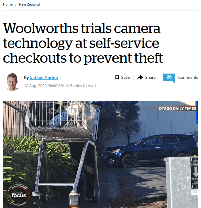 Woolworths公司总部证实,该公司在新西兰全国各地的超市门店,正在调试这种监控技术。