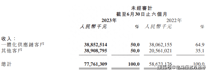 具体到业务方面,今年上半年京东物流一体化供应链客户营收为389亿元,同比微增2%,收入占比从去年的65%下滑至50%;其他客户营收为389亿元,同比大增89%,占比从35%提高至50%,增长的主要原因是快递快运服务的业务量增加以及合并德邦的增量影响。