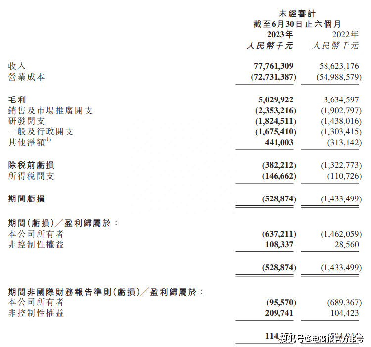 (截自京东物流截至2023年6月30日止三个月及六个月业绩公告)