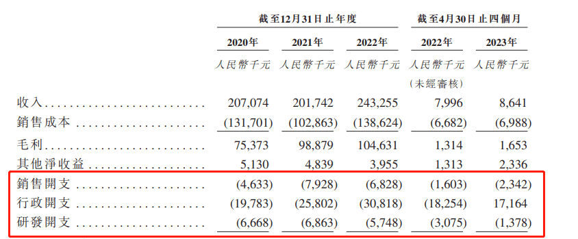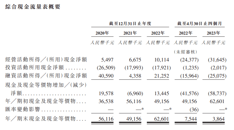 费用方面,2022年,迈越科技的销售开支、行政开支、研发开支分别为682.8万元、3081.8万元、574.8万元,除了行政开支同比有所增加,其他费用支出和上年相比均有所下降。2023年前四个月,迈越科技的研发开支为137.8万元,和上年同期的307.5万元相比减少54.8%。对此,公司称主要是由于员工成本及外判服务减少。