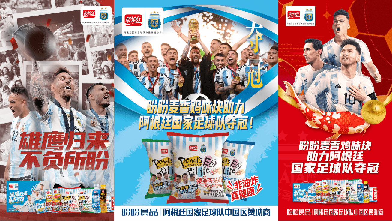 在盼盼食品的品牌国际化营销方面,我们能够清晰地感知到企业的战略高度。盼盼食品作为亚洲品牌500强,是金砖国家领导人厦门会晤、博鳌亚洲论坛、上合组织青岛峰会指定使用产品。具体到体育营销上,盼盼食品不但赞助了北京冬奥会、成都大运会、杭州亚运会这样的综合性体育大赛,还在卡塔尔世界杯上支持了阿根廷国家队,并且将合作关系延续了下来。通过不断在世界顶级舞台亮相,盼盼食品逐渐打开了海外市场大门,也让世界认识到民族品牌的产品力、品牌力。