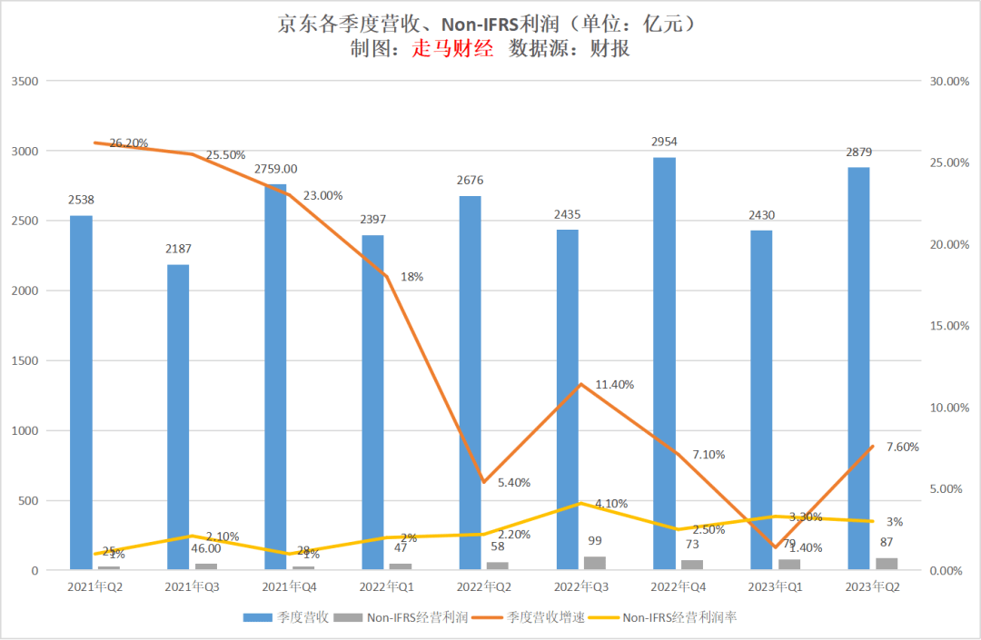 从财务指标来看,季度营收2879亿,同比增速7.6%,Non-IFRS经营利润87亿,同比增长50%,利润率3%。