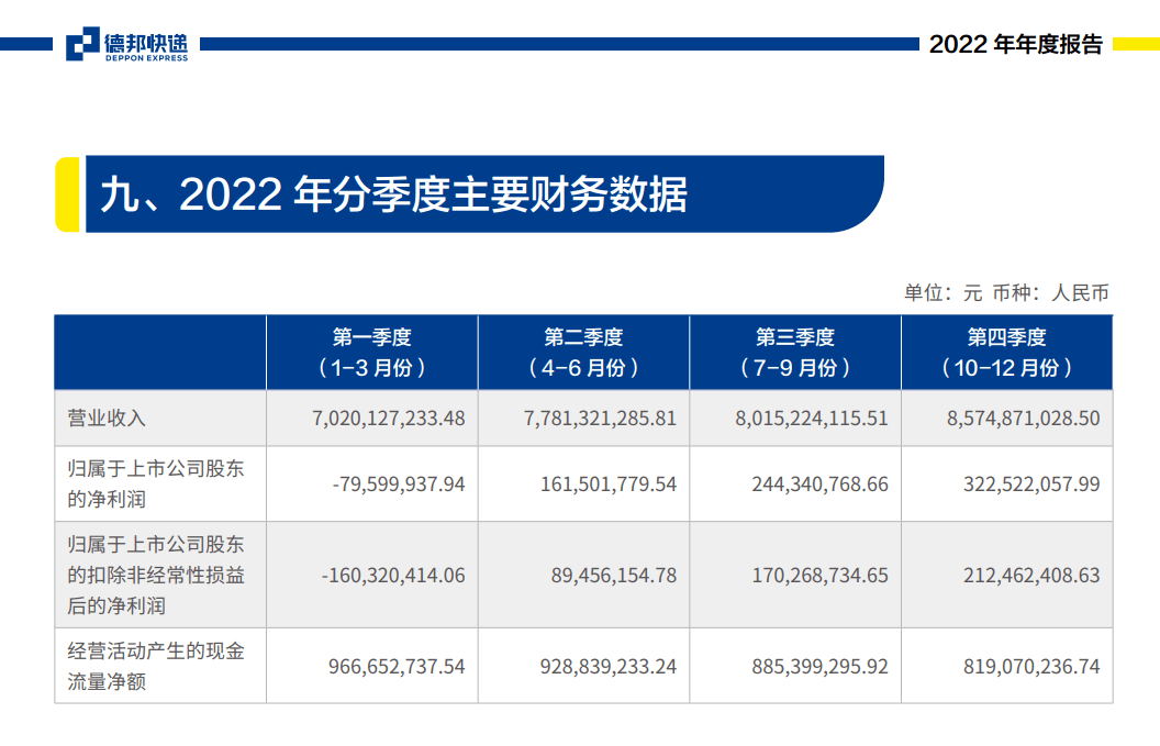 单看这个季度营收和增速数据,你很容易获得“拐点已现、营收开始加速增长”的印象,但是,最近四个季度的营收数据都因为德邦物流并表——而2021年Q3-2022年Q2都没有——而使得增速失真。