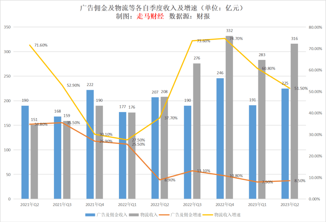 京东整体营收包括自营商品收入,也包括第三方平台佣金、广告和物流等服务收入,拆开来看,更能看出其中端倪。