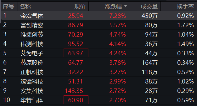 科创芯片ETF华安(588290)紧密跟踪上证科创板芯片指数,指数成份股中,金宏气体上涨7.28%,富创精密上涨5.57%,唯捷创芯上涨4.74%,伟测科技、艾为电子等个股跟涨。