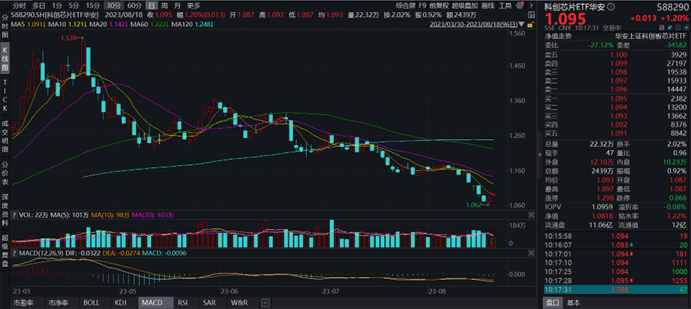 截至10:17,科创芯片ETF华安(588290)上涨1.20%,成交额2439万元,资金持续关注,市场交投活跃。
