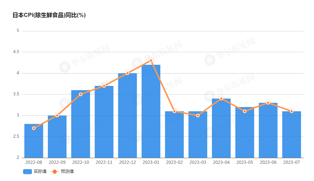 7月日本CPI同比上涨3.3%,持平前值,不包括食品和能源价格的“核心核心CPI”同比上涨4.3%,略高于上月4.2%,同样符合预期。