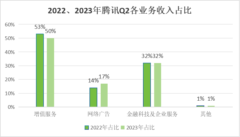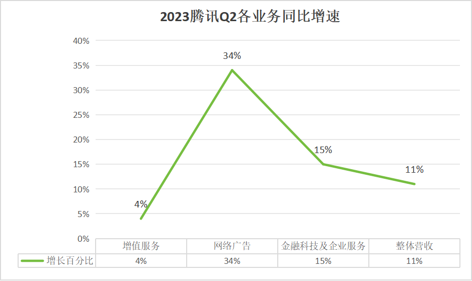二季度,腾讯的增值服务实现营收742亿元,同比增长4%,成绩不算差,但相比腾讯11%的整体增速,并不突出。