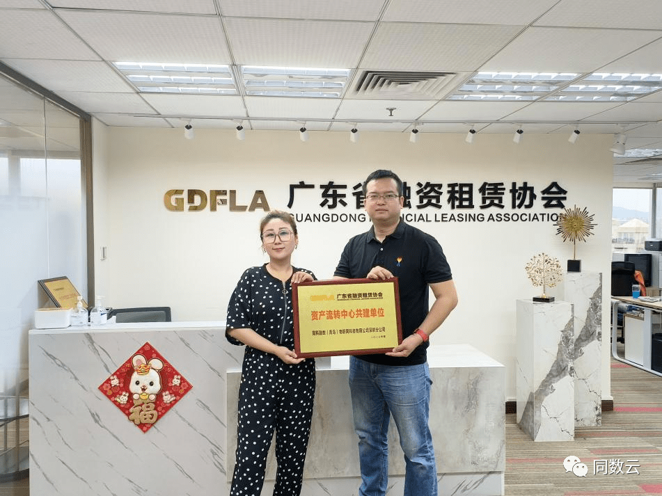 近日,广东省融资租赁协会授予同数云共建单位牌匾,同数云将全面且深入地参与到广东省融资租赁行业的租赁资产管理数字化、规范化、合规化建设中。