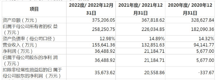 招股书显示,上海合晶是半导体硅外延片一体化制造商,主要产品及服务包括半导体硅外延片及半导体硅材料。2020年-2022年(以下简称:报告期),上海合晶的营业收入分别为9.41亿元、13.29亿元和15.56亿元,同期归母净利润分别为0.57亿元、2.12亿元和3.65亿元;报告期内公司营收净利出现增长。