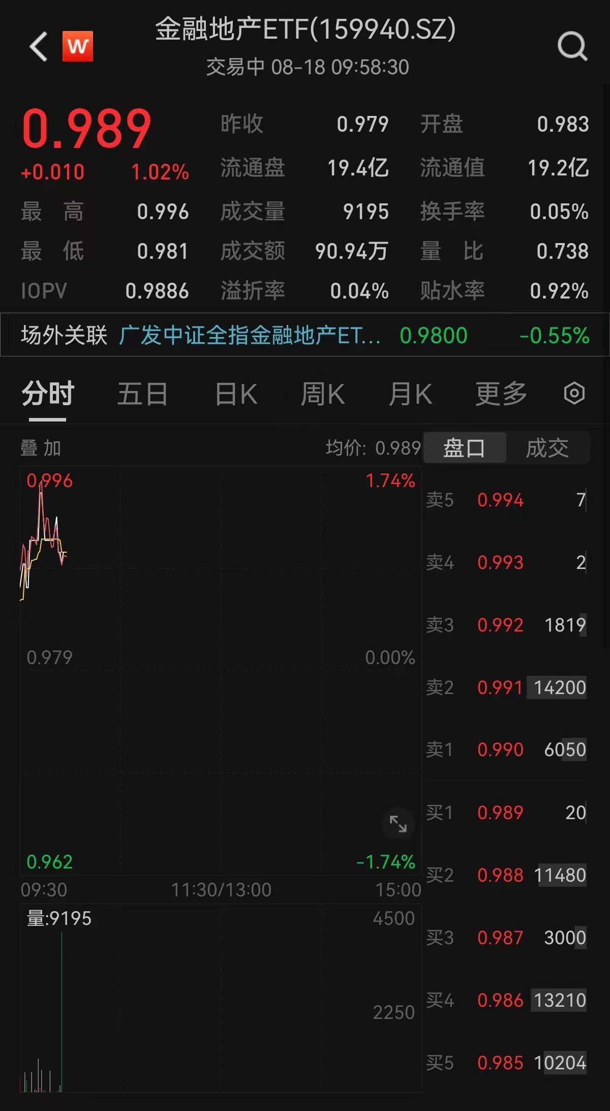 截至09:58,金融地产ETF(159940)早盘快速拉升现涨1.02%,成交额超90.94万元,市场交投活跃,成交金额持续扩大。