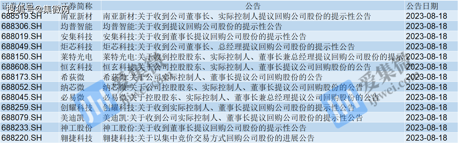 集微网消息,在市场持续低迷之际,上市公司集中提议回购自家股票,向市场传递对股价积极的信号,以提升投资者的信心。