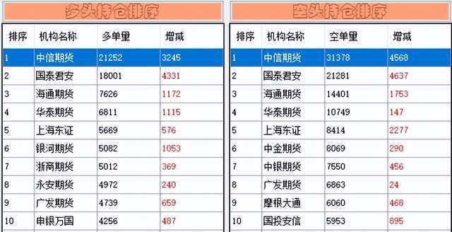 先来看下对下一个交易日有预判作用的“神器”——中信期货在股指期货上的增减持情况。它在沪深300股指期货上多单方面增仓3245手,空单方面增仓4568手,空单增仓量大于多单增仓量,给出了“偏空”的信号——预判正确。
