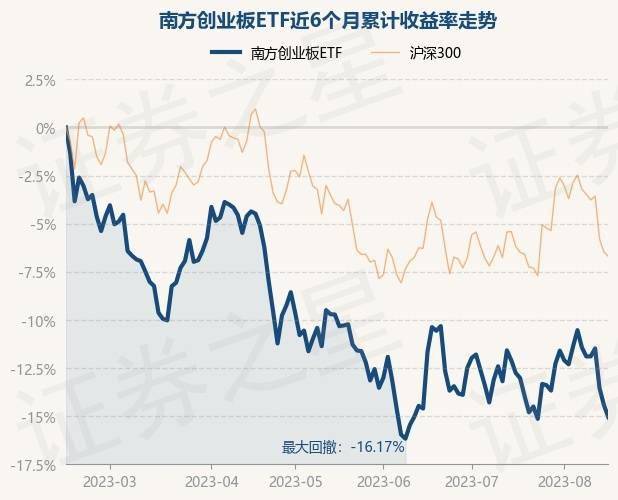 8月15日,南方创业板ETF最新单位净值为2.3108元,累计净值为1.1355元,较前一交易日下跌0.73%。历史数据显示该基金近1个月下跌3.36%,近3个月下跌6.19%,近6个月下跌15.07%,近1年下跌20.39%。该基金近6个月的累计收益率走势如下图: