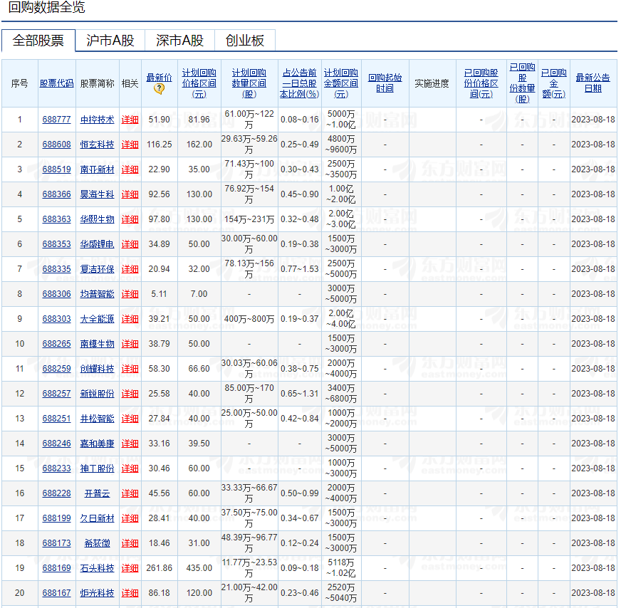 部分公司则在前日就已行动。8月16日晚间,科思科技、奥泰生物、理工导航、麦澜德、晶华微5家科创板公司董事长提议回购公司股份。有私募人士在朋友圈表示:“很多科创板公司资金充足,反正趴在账上意义不大,还不如趁股价低,拿来回购。”