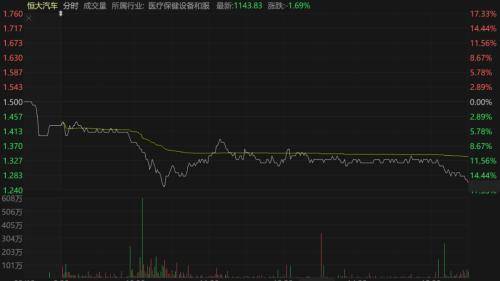 受中国恒大在美国申请破产保护消息影响,8月18日开盘后,港股恒大汽车(00708,HK)开盘跌约4%,之后跌幅一度接近17%,最低报1.24港元/股,随后开始反弹。截至收盘报1.26港元/股,跌幅16%。