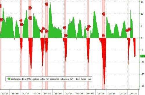 与去年同期相比,LEI下降了7.5%,接近2008年雷曼兄弟倒闭以来的最大同比跌幅,但不包括因新冠疫情而导致的崩溃。