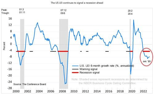 尽管有“软着陆”的炒作,但LEI并没有显示出任何“复苏”的迹象,反而降至2017年9月以来的最低水平(不包括新冠疫情期间)。