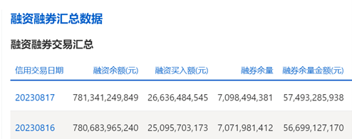 截止8月17日,上交所融资余额报7813.41亿元,较前一交易日增加6.57亿元;深交所融资余额报7073.66亿元,较前一交易日增加4.26亿元;两市合计1.49万亿元,较前一交易日增加10.84亿元。