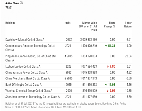 摩根大通旗下“JPMorgan Funds - China A-Share Opportunities Fund” 最新规模377.21亿元。截至2023年7月底,基金重仓股包括贵州茅台、宁德时代、中国平安、泸州老窖、长江电力、招商银行、宁波银行、万华化学、汇川技术等。7月,基金加仓宁德时代51.31%,加仓宁波银行11.98%,加仓后,宁德时代位列基金的第二大重仓股。