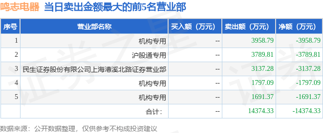 沪深交易所2023年8月18日公布的交易公开信息显示,鸣志电器(603728)因有价格涨跌幅限制的日收盘价格跌幅偏离值达到7%的前五只证券登上龙虎榜。此次是近5个交易日内第1次上榜。